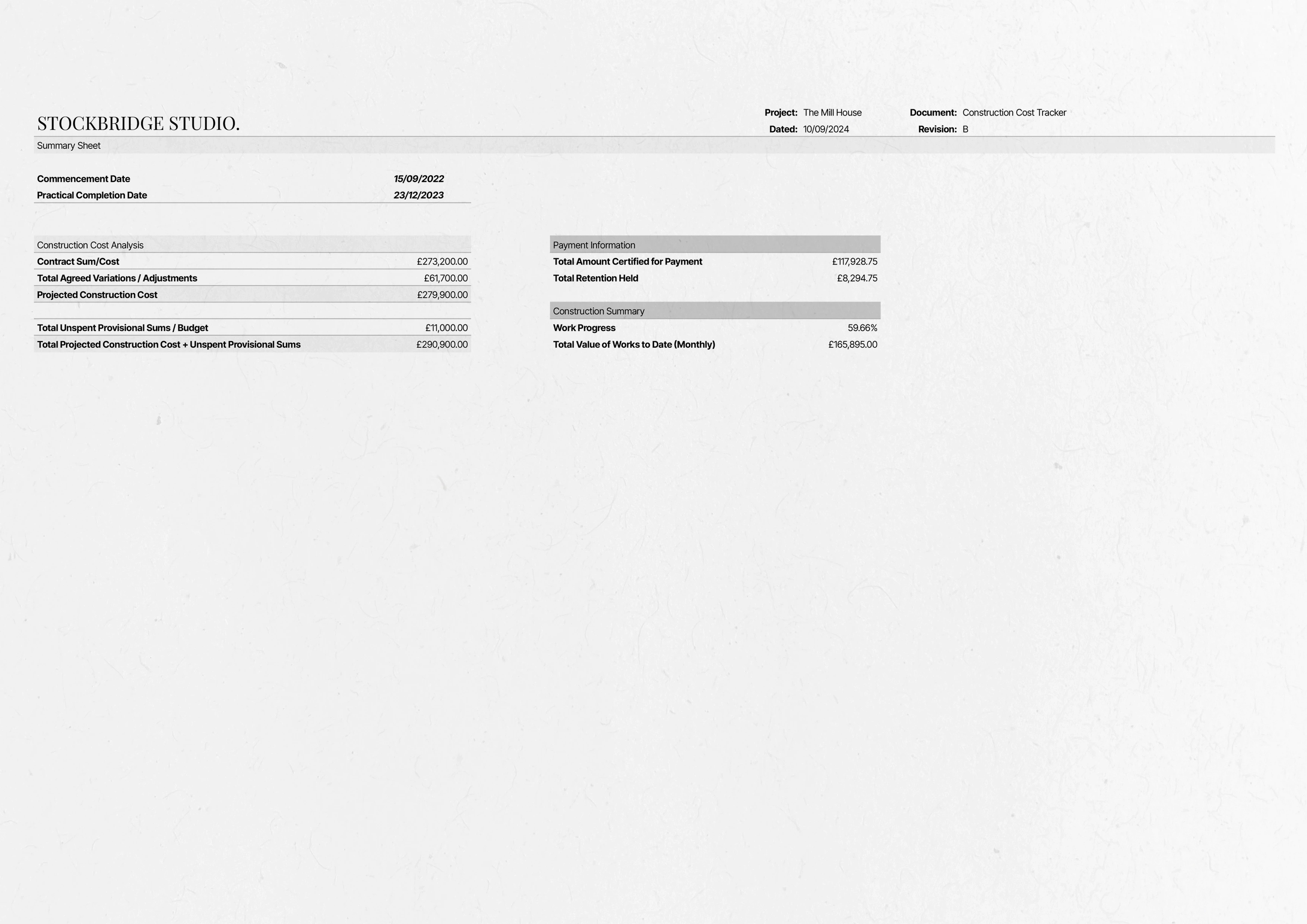 This Construction Cost Tracker is designed for architects, interior designers, and project managers.