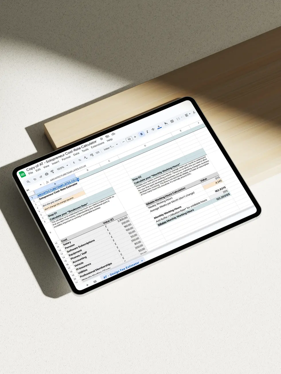 This comprehensive freelance fee calculator covers every aspect of your finances, from expenses to profit margins, ensuring you’re fully informed and ready to create fee proposals that build client trust. Perfect for architects, interior designers, and other solo professionals, this tool is an invaluable asset for accurate rate-setting.