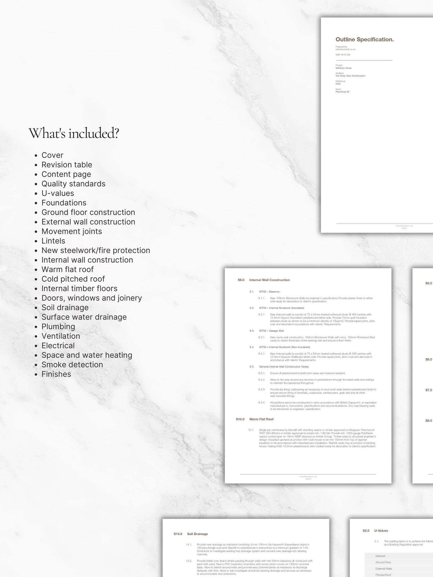 Part of the Colombo style of templates, this Outline Architectural Specification template is designed for architects who want to communicate project requirements clearly, concisely, and with a professional touch. Save time, standardise your documentation, and impress clients with a polished specification every time.