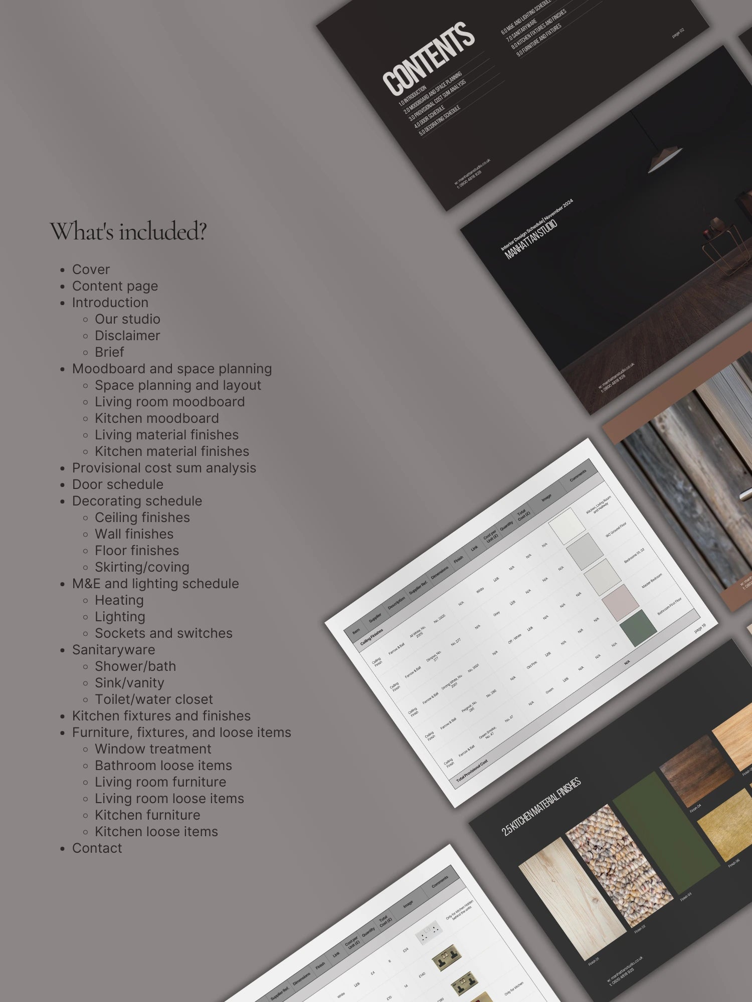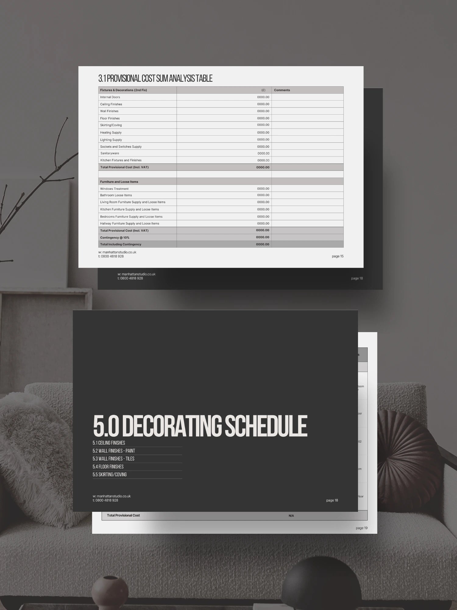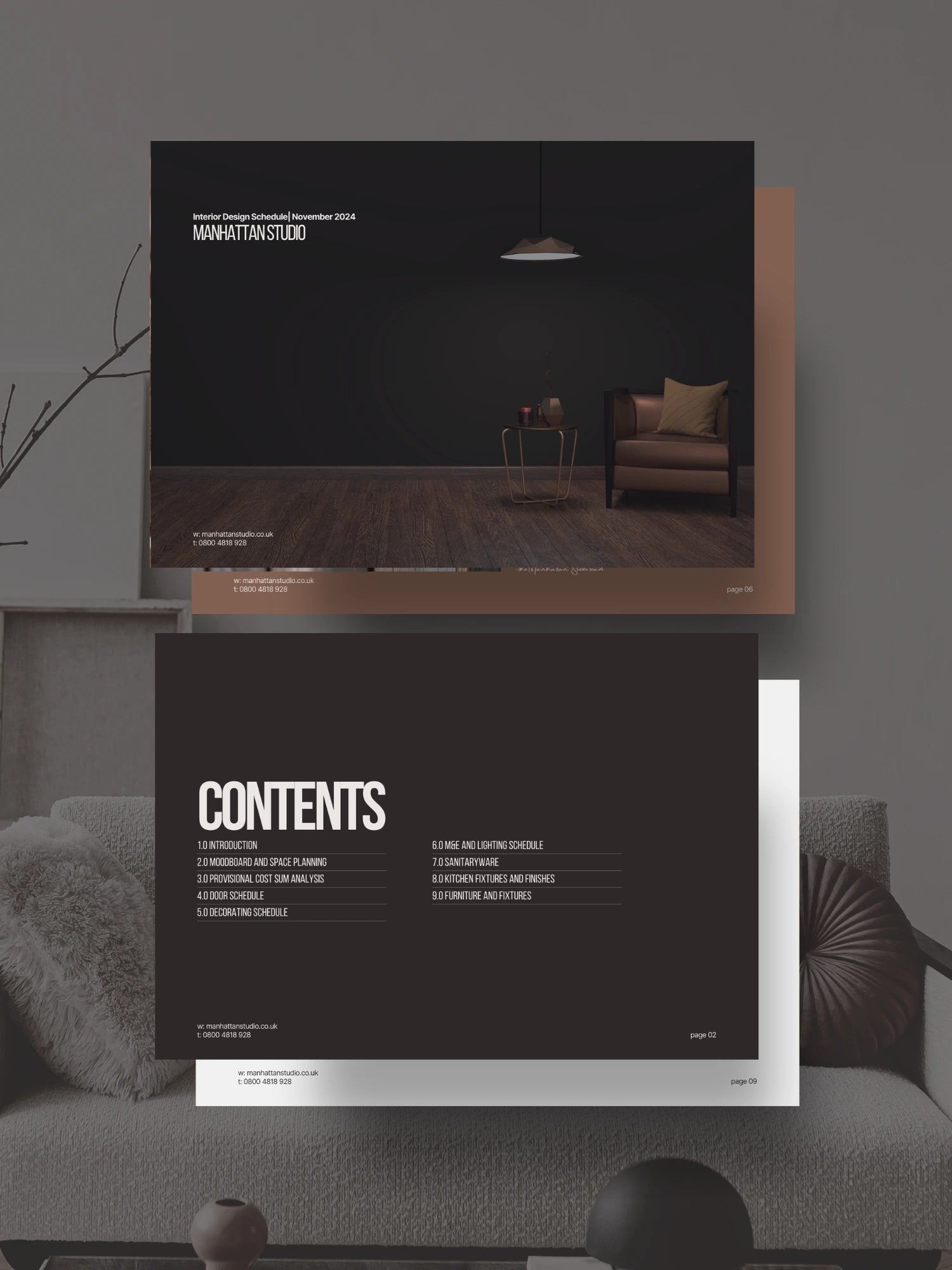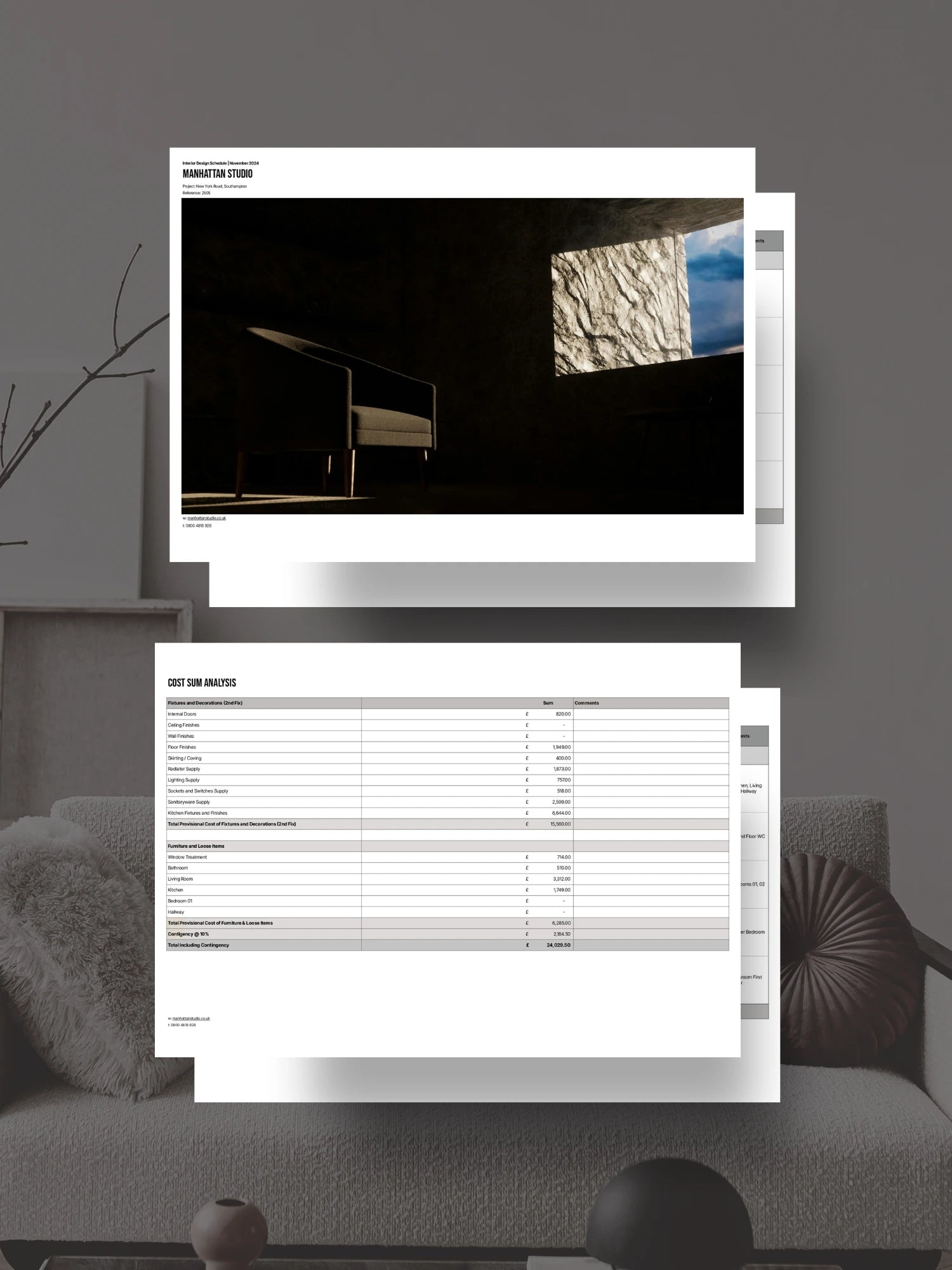 Part of the Manhattan style of templates, this sleek and professional FF&E Schedule Template is designed for interior designers who want to simplify their procurement process, streamline project coordination, and present their selections with clarity and style. A powerful tool to save time, stay organised, and elevate your brand.