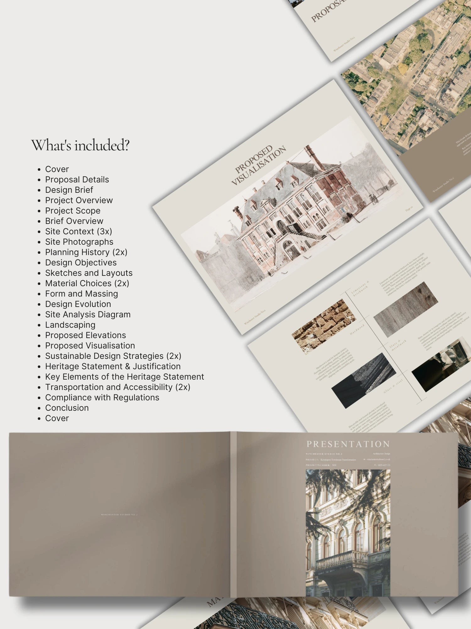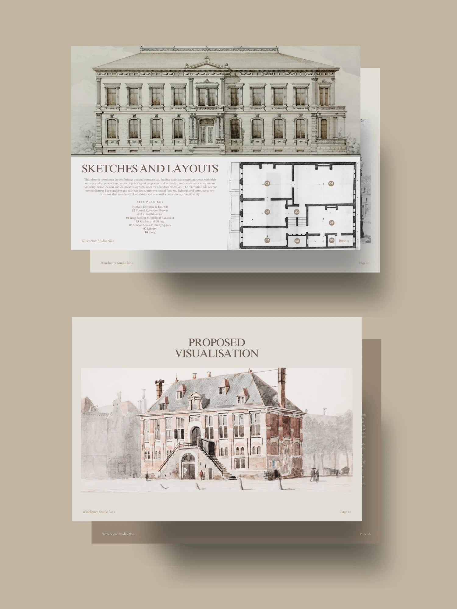 Part of the Winchester style of templates, this soft, and inviting design presentation is crafted for busy designers who want to showcase their ideas with style, clarity, and confidence. Save time and impress your clients with a beautifully structured, reusable presentation template.