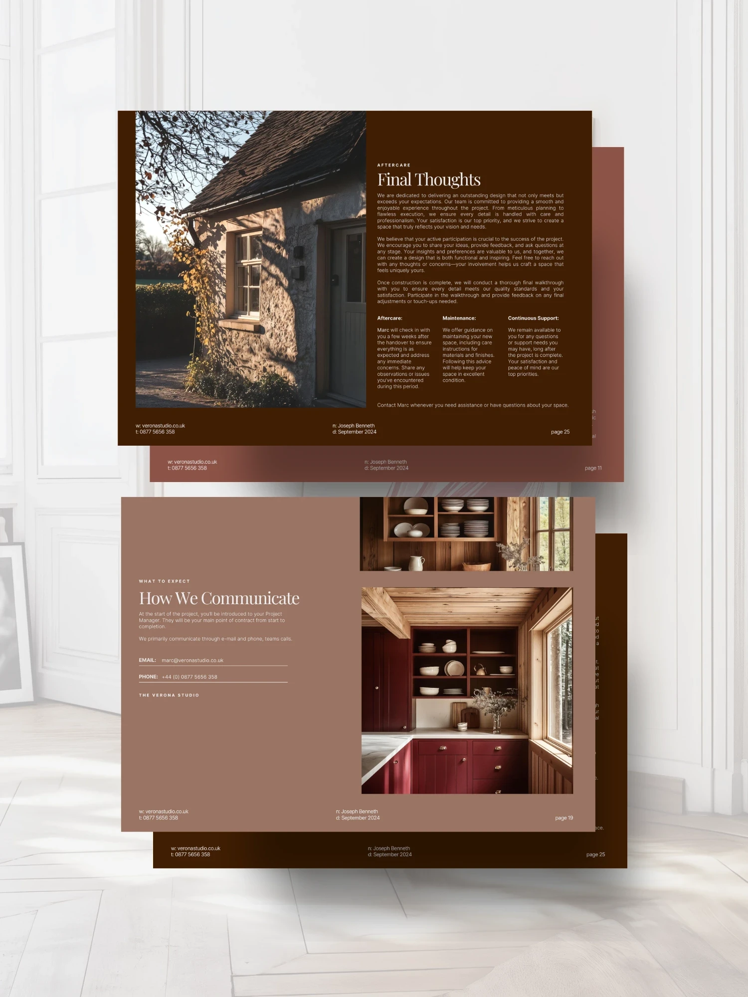 Sent after you're fees are agreed, it clarifies your process, sets expectations, and walks clients through the project journey before they've had the chance to ask. Done well, it establishes your expertise from the moment the contract is signed. Our templates are pre-structured with everything you need, from FAQs to fee process, so you can onboard new clients with confidence and get back to the work you actually love.